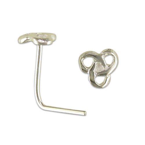 Sterling silver celtic loops nose stud. The celtic loops are 4mm in diameter. This nose stud is L shaped for an easy fit and will come to you in a small clear-top box.