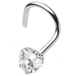 Clear Crystal Heart Sterling Silver Nose Screw Bar Crystal Size: 3mm Bar Length: 1/4" or 6mm Bar Thickness: 20GA or 0.8mm Sterling Silver