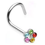 Multi Crystal Sterling Silver Flower Top Nose Stud Screw... Ball Size: 4mm Bar Thickness: 20GA or 0.8mm