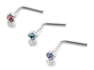 A set of three 1mm diameter crystal set nose wires in blue, green and pink.