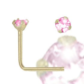 Jewelco London 9ct Yellow gold Pink cubic zirconia claw-set Nose Stud. Diameter of the Stone is 2mm