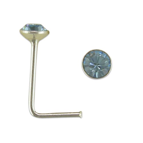 Sterling silver Austrian crystal nose stud. A random colour is supplied. The crystal is 3mm in diameter. This nose stud is L shaped for an easy fit and will come to you in a small clear-top box.