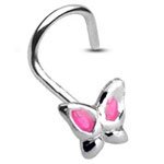 925 Sterling Silver Pink Butterfly Nose Stud Screw Butterfly Size: 3mm Bar Length: 1/4" or 6mm Bar Thickness: 20GA or 0.8mm .925 Sterling Silver