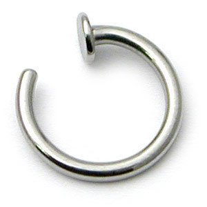 The small disc rests discretely inside the nostril with most of the ring showing. A great alternative to other nose jewellery, Steel Open Nose Rings come in 4 gauges (0.8mm, 1.0mm, 1.2mm, 1.6mm). They are available in 3 diameters (7, 8, 9mm) in these gauges. 1.0mm and 1.2mm gauge also available in black steel (blackline).