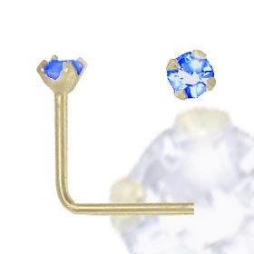 Jewelco London 9ct Yellow gold Dark Blue cubic zirconia claw-set Nose Stud. Diameter of the Stone is 2mm