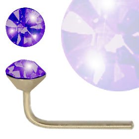 Jewelco London 9ct Yellow gold Deep Violet cubic zirconia set Nose Stud. Diameter of the Stone is 3mm