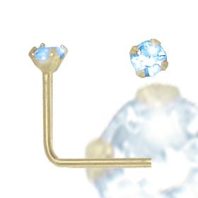Jewelco London 9ct Yellow gold Light Blue cubic zirconia claw-set Nose Stud. Diameter of the Stone is 2mm
