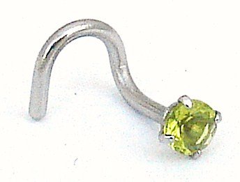 Surgical steel nose ring with twist style back. 3mm wide gem stone. 1mm thick nose screw.