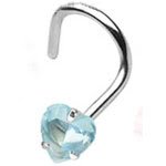 Aqua Crystal Heart Sterling Silver Nose Screw BarCrystal Size: 3mmBar Length: 1/4" or 6mmBar Thickness: 20GA or 0.8mmSterling Silver