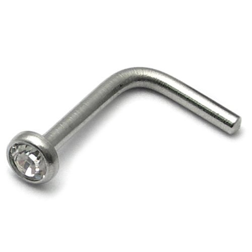 Surgical Steel 'L' shaped jewelled nose stud in 0.8mm gauge, with 2.35mm jewel head. Available in 11 Swarovski jewel colours.