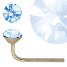 Jewelco London 9ct Yellow gold Light Blue cubic zirconia set Nose Stud. Diameter of the Stone is 3mm