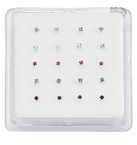 Jewelco London Silver - anti tarnish Plated - Multi Coloured Crystal - - Nose Pins -