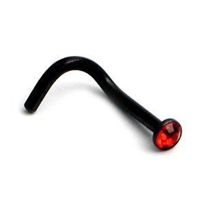 Nose Screw | Nose pin 1.0mm with swarowski crystal | 2.25mm gem | Black steel | Nose Stud | Nose jewellery | Red