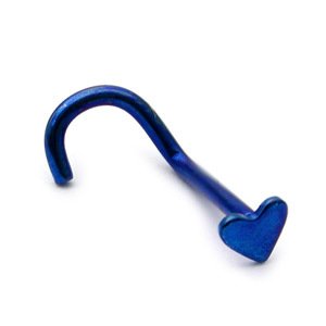 Nose Screw | Titanium Nose pin 0.8mm with Heart top | Blue Titanium | Titanium Nose stud