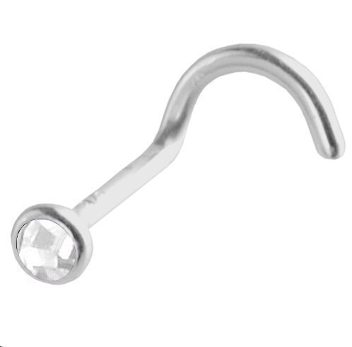 Material: 925 Sterling SilverBar Thickness: 1,0 mmStone: 2,0 mm ZirconiaNose Stud Piercing 925 Sterling Silver with White Stone