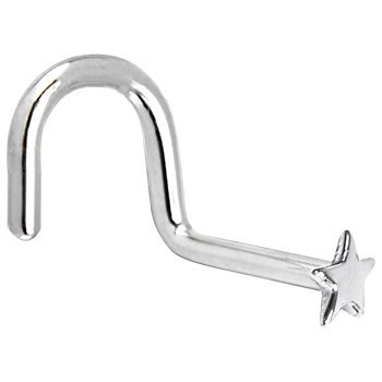 Solid 14KT White Gold Star Right Nostril Screw - 20 Gauge